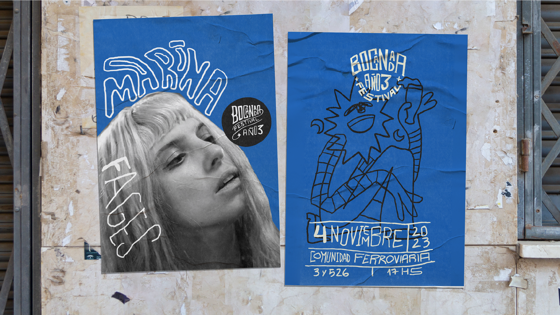 Utilicé una paleta de colores muy acotada de azul / rosa y negro y acompañé los diseños con tres versiones de logo para el festival. La identidad en su totalidad haría que se entienda como parte de lo mismo